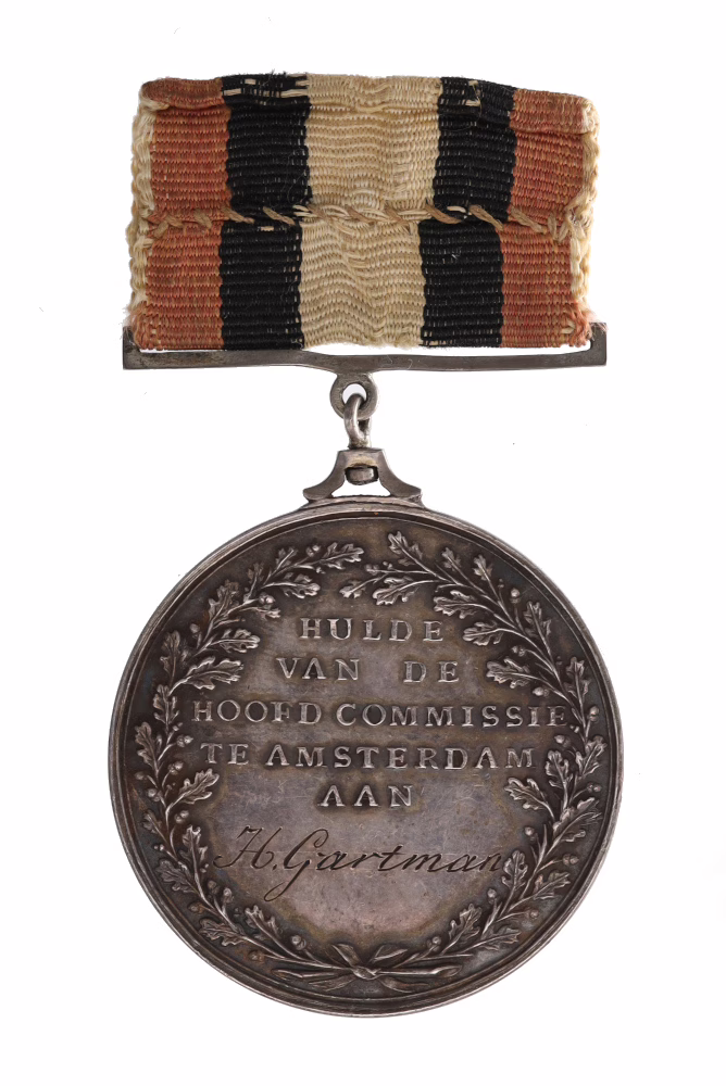 | Opschriften | voorzijde: BELEG VAN NAARDEN; keerzijde: HULDE VAN DE HOOFDCOMMISSIE TE AMSTERDAM AAN |