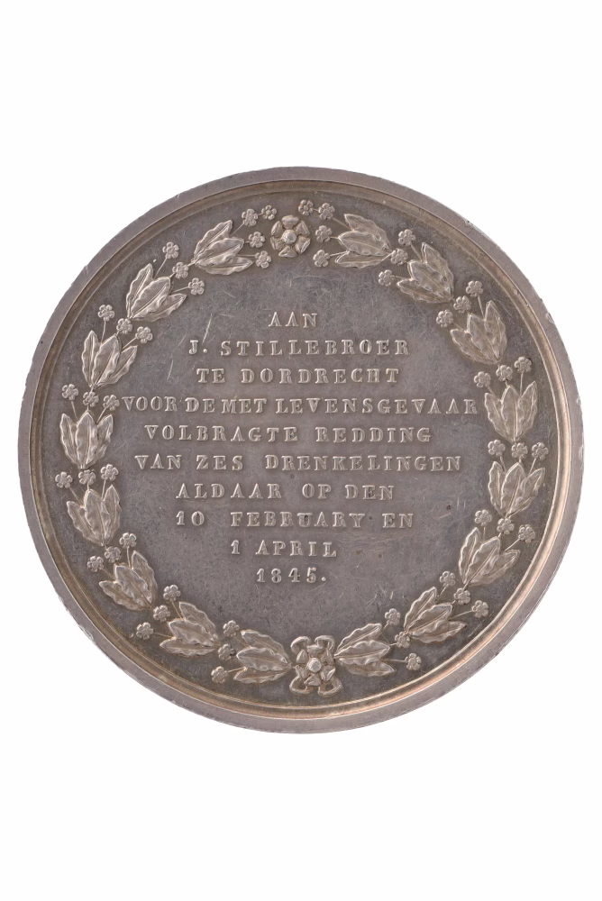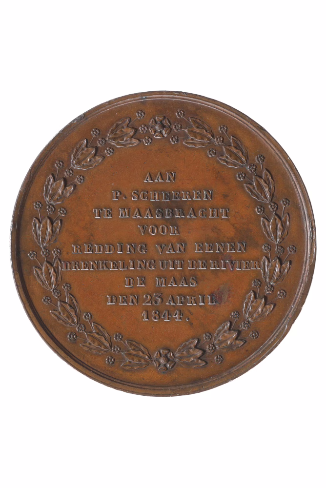 | Opmerking | De penning werd uitgereikt in twee klassen: goud en zilver. De gouden medaille had een diameter van 41 mm en een waarde van 10 dukaten; de zilveren medaille werd geslagen op een stempel van 51 mm. In december 1841 werd hieraan een bronzen medaille van 51 mm toegevoegd. Op de keerzijde werd een opschrift gegraveerd met daarin de naam van de ontvanger van de medaille en tijdstip en aard van de menslievende daad. |