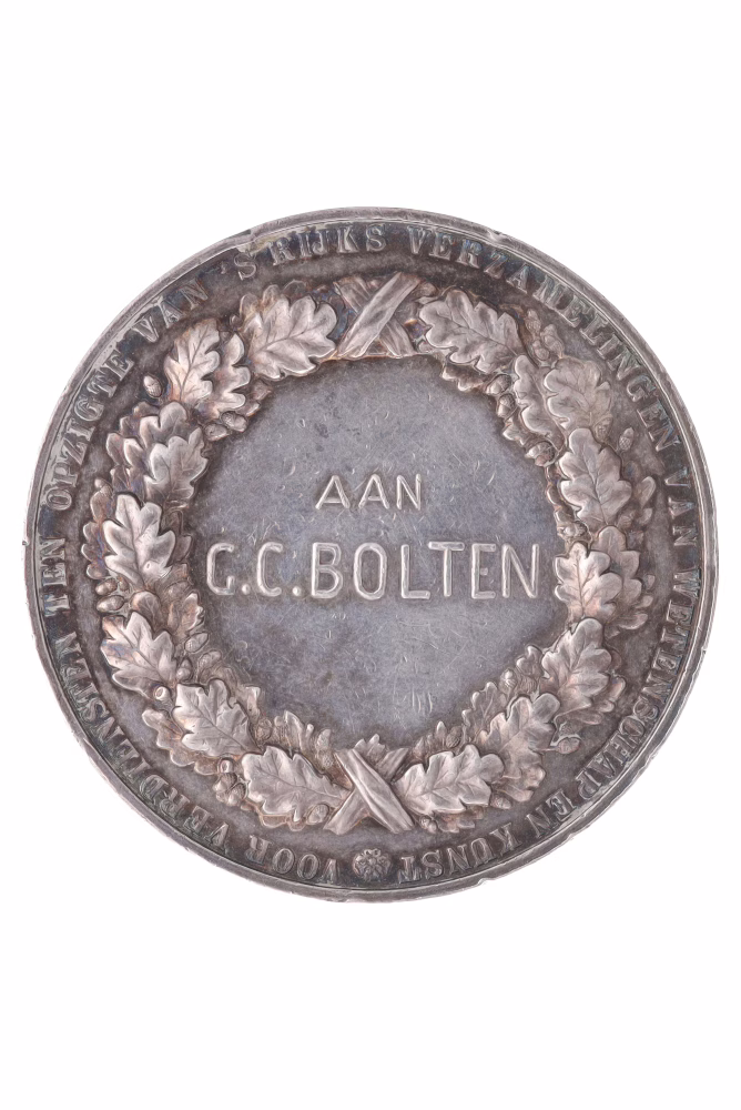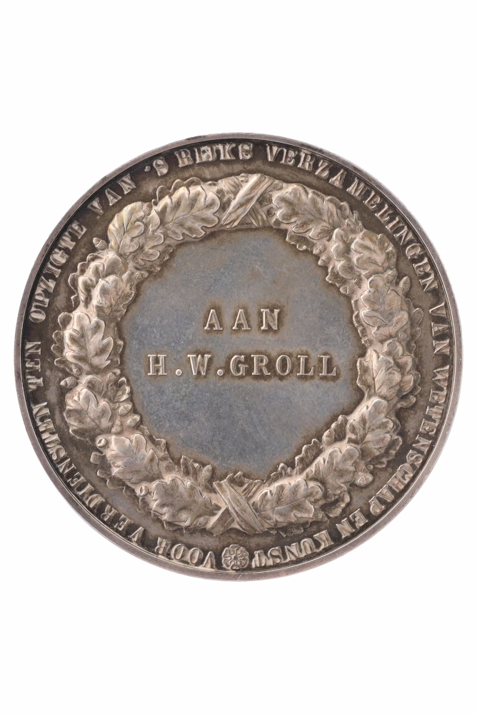 | Opschriften | voorzijde: WILHELMINA KONINGIN DER NEDERLANDEN; keerzijde, omschrift: VOOR VERDIENSTEN TEN OPZIGTE VAN ‘S RIJKSVERZAMELINGEN VAN WETENSCHAP EN KUNST; opschrift: AAN |