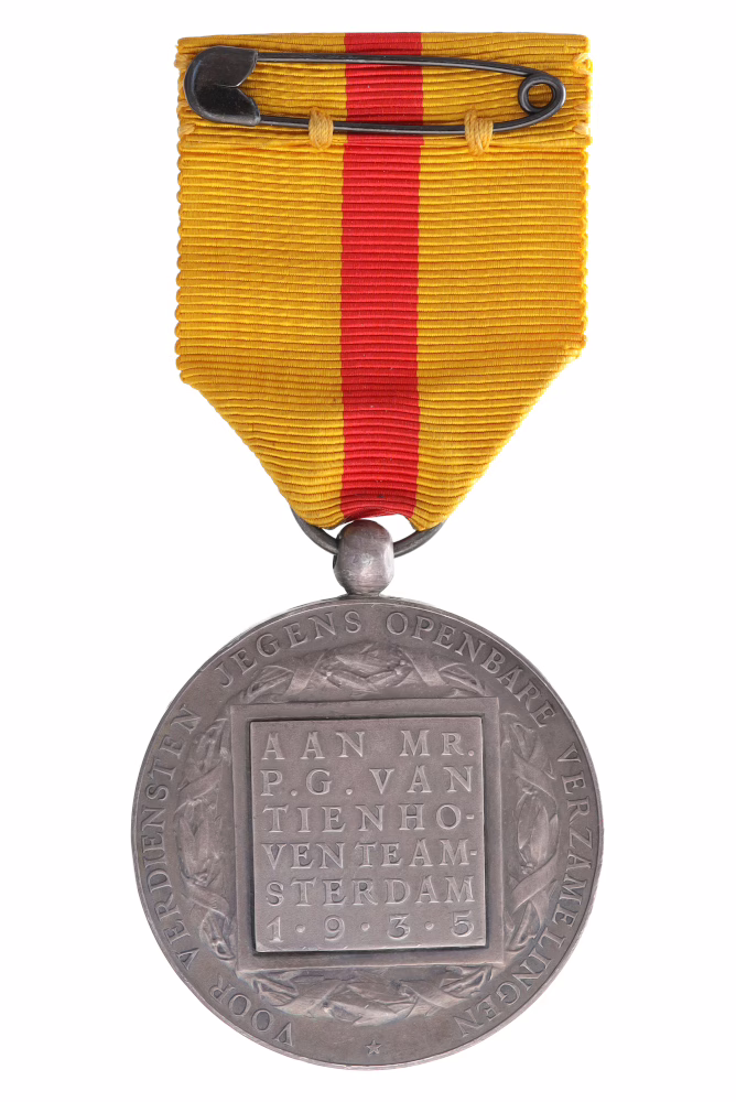 | Opschriften | voorzijde: WILHELMINA KONINGIN DER NEDERLANDEN; keerzijde: VOOR VERDIENSTEN JEGENS OPENBARE VERZAMELINGEN |