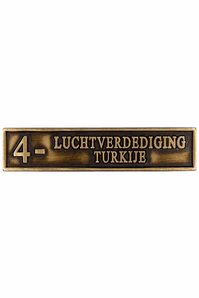 De Herinneringsmedaille Internationale Missies, gesp LUCHTVERDEDIGING TURKIJE is ingesteld als beloning voor degenen, die hebben deelgenomen aan de Nederlandse operatie Tulip Guardian, de NAVO-operatie Display Deterrence of de NAVO-operatie Patriot missie Active Fence, 1(NL) Ballistic Missile Defence Task Force.