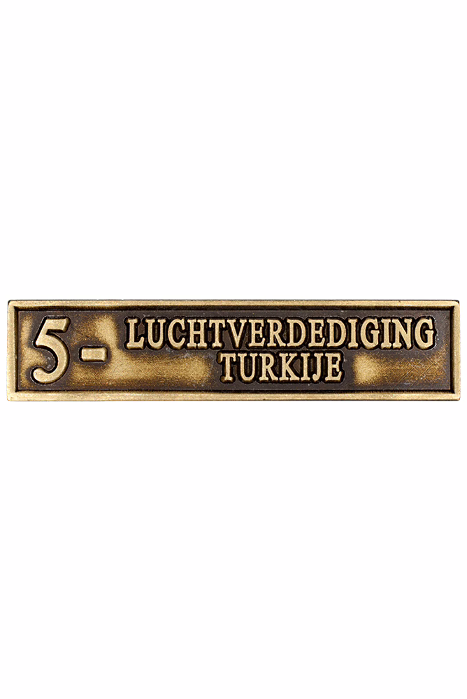 | Opmerking | De Herinneringsmedaille Vredesoperaties, gesp LUCHTVERDEDIGING TURKIJE kan meer dan eens worden verleend. Daarvoor zijn de gespen 2-LUCHTVERDEDIGING TURKIJE tot en met 10-LUCHTVERDEDIGING TURKIJE. |
