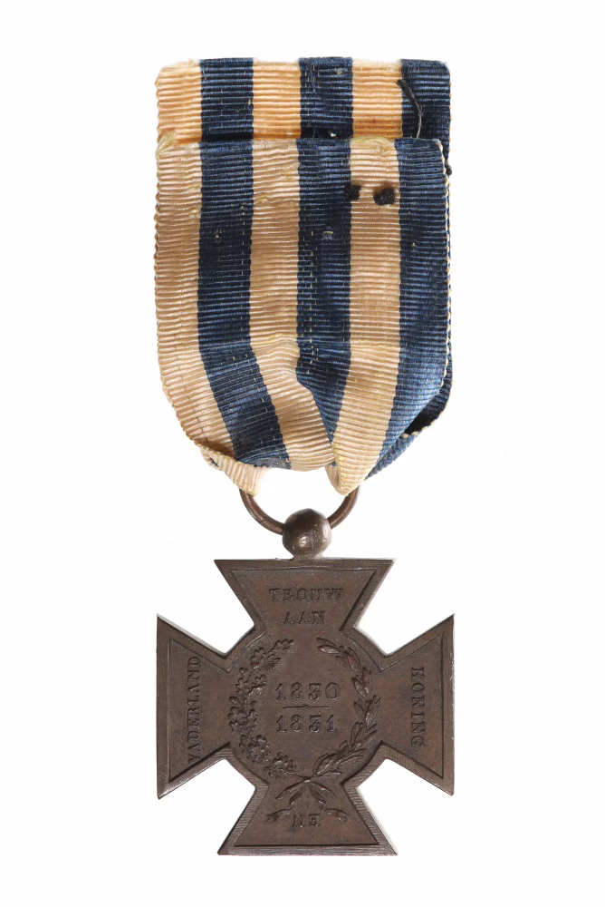 | (Historische) context | In augustus 1830 brak in Brussel een opstand uit tegen het bewind van koning Willem I. De Belgische opstand leidde ertoe dat de zuidelijke provincies zich afscheidden van het Verenigd Koninkrijk der Nederlanden en het onafhankelijke koninkrijk België vormden. In de jaren 1830-1832 waren beide landen openlijk met elkaar in oorlog. Het Metalen Kruis werd in 1831 ingesteld en werd verleend aan allen die aan Nederlandse zijde tegen de Belgen vochten. |