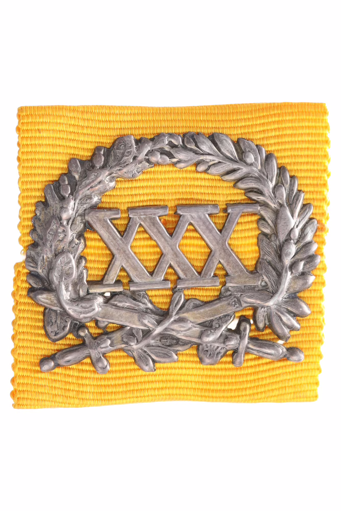 | Opmerking | Tot 1866 had het onderscheidingsteken de vorm van een gesp. In dat jaar werd de vorm veranderd in een breedarmig kruis, gedragen aan een oranje lint. Het onderscheidingsteken wordt uitgegeven voor 15 dienstjaren. Het aantal dienstjaren wordt met Romeinse cijfers aangegeven. |