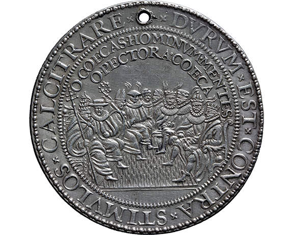 Op 7 april besloten de Staten-Generaal om aan de vertrekkende ambassadeur het gebruikelijke afscheidsgeschenk te geven, namelijk een gouden ketting en twee medailles. Maar Von Bylandt weigerde tot tweemaal toe het geschenk te aanvaarden. Een reden voor de weigering wordt niet gegeven. Maar als we kijken naar de medailles die aan de ketting hingen, dan lijkt wel duidelijk waarom Von Bylandt het geschenk weigerde: op de keerzijde van een van beide medailles staan verschillende katholieke vorsten afgebeeld. Met een blinddoek voor hun ogen zitten zij met hun voeten op een spijkerbed. Onder de vorsten herkennen we niet alleen de paus en de Spaanse koning Filips II, maar ook keizer Rudolf II, de heer die Von Bylandt vertegenwoordigde. Het Latijnse omschrift laat weinig aan duidelijkheid te wensen over: O blinde geesten der mensen, o blinde harten. Dat zal voor Von Bylandt zeker de reden zijn geweest om het gouden geschenk te weigeren.
